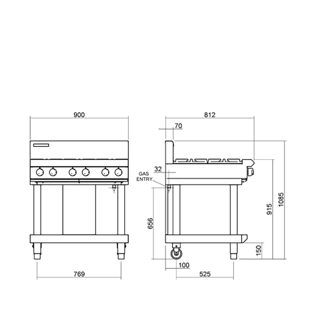 – 900mm gas cooktop on bench feet