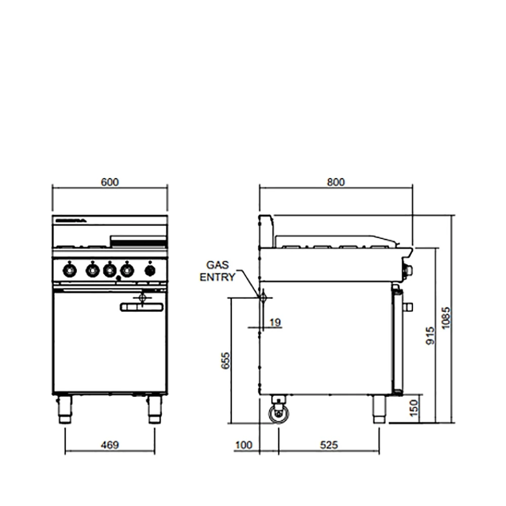 – 1 griddle burner with pilot, flame failure and piezo ignition