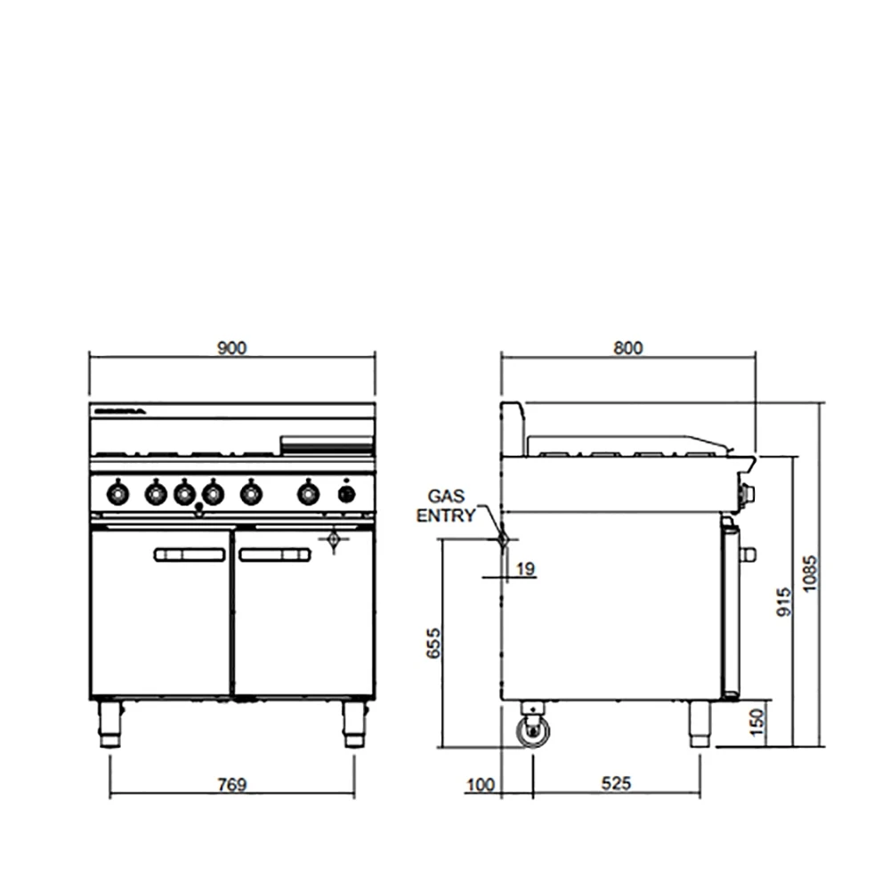 – 1 griddle burner with pilot, flame failure and piezo ignition