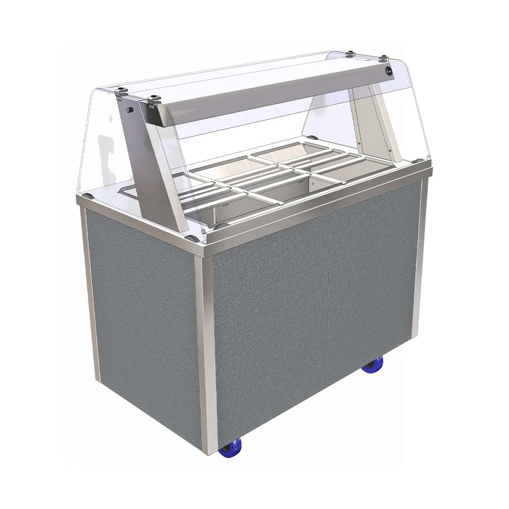 – Glide mobile dining cart, dry well bain marie top (no gantry), electric, suspended heat elements, 3-1Gn, 1175(l) x 700(d) x 1297(h), BM accommodates (3) x 1-1 Gn 150mm (d) containers (not included).