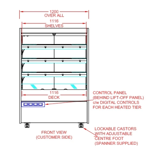 – Features 4 ‘tamper proof’ digital control panels – concealed in lift off front fascia panel – which allow variable temperature holding to each tier.