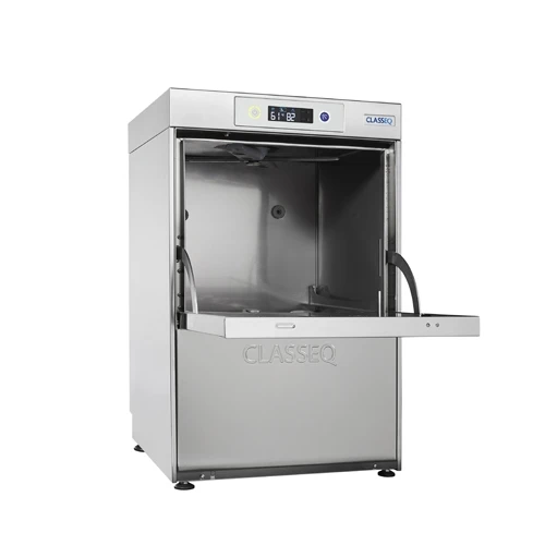 Compact, front-loading commercial glasswasher with a digital display, two wash programs and full WRAS approval for compliant, effortless and consistently clean results.