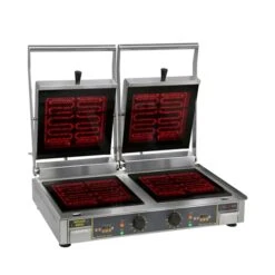 Roller Grill PREMIUM VC DL Ceramic Contact Double Grill Ribbed Top, Flat Base Stainless Steel