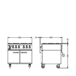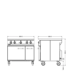 Opus 800 By Lincat 4 Burner Gas Range Oven OG8001 Right Hin Stainless Steel & Black