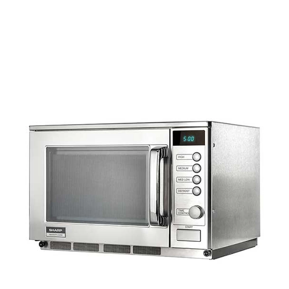 Ideal for use in a busy catering kitchen, the Sharp Dial Control Microwave 1900 Watts R23AM is the perfect appliance for heavy duty cooking. Sharp is renowned for its heritage in microwave ovens and has been improving this technology for over 50 years! The heavy duty R23AM microwave oven offers a simple electronic dial control with 4 power levels 10%, 20%, 50% and 100% power, and has a defrost facility. The 20 litre capacity is suitable for many applications and is the obvious choice for cooking a diverse menu and is ideal for re-heating curries, chillies in takeaways and pub chains.
